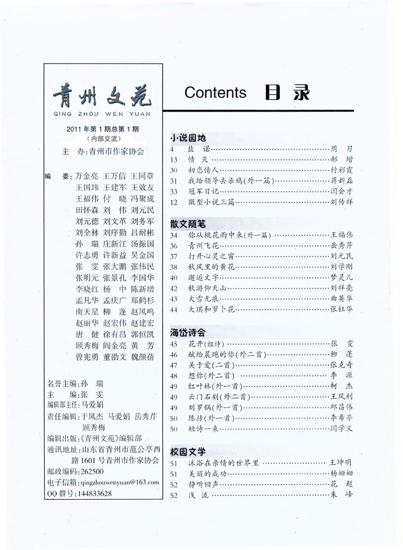 《青州文苑》2011年第1期目录